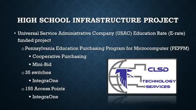 CLSD plans E‑rate purchases for high‑school network, seeks vendor awards and rolls out PCCD camera grant