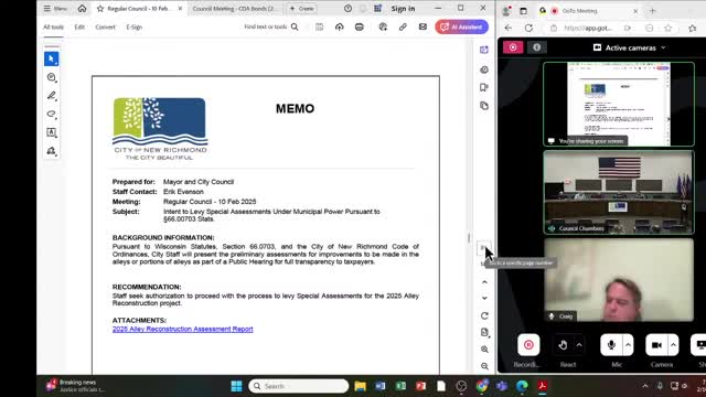 Council approves preliminary special assessment for alley reconstruction; residents assessed 50% of asphalt cost