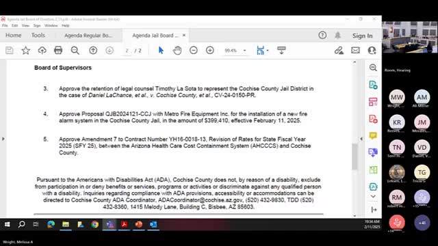 Cochise County Jail District board retains counsel in election lawsuit, approves health contract rate change; residents urge sales tax and Bisbee site