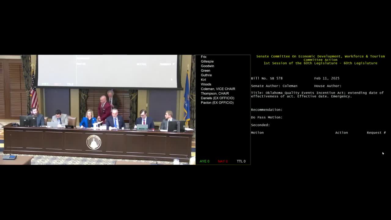 Committee renews and extends the Oklahoma Quality Events Incentive Act to keep events program available