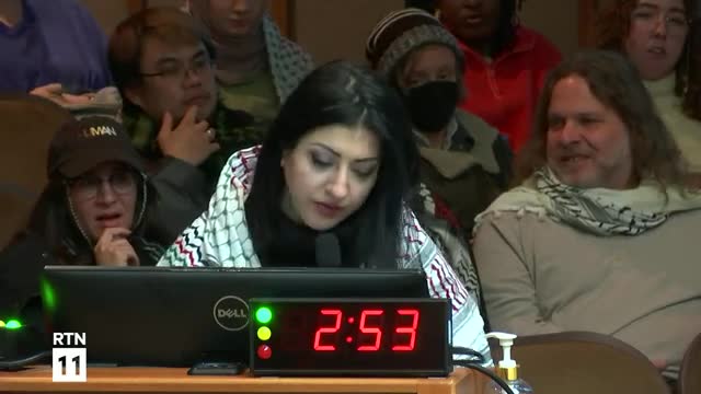 Multiple speakers urge council to condemn violence in Gaza and probe local ties to defense contractor Elbit