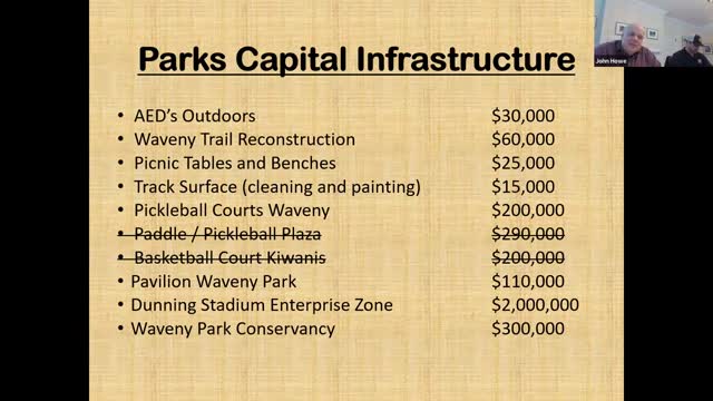 Town staff seek multi‑year park capital funds, including irrigation, bleachers and Dunning upgrades
