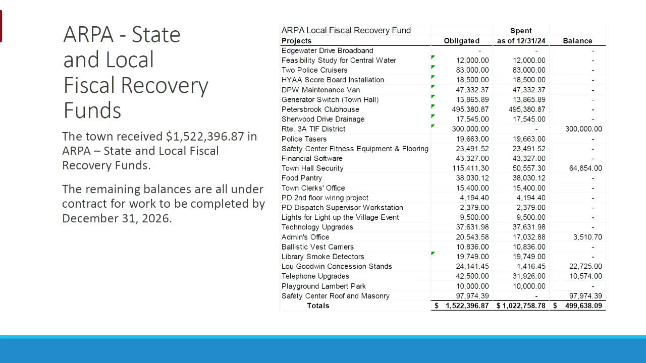 Town finance director reports mid‑year budget status; recreation impact fees earmarked for Petersburg lights