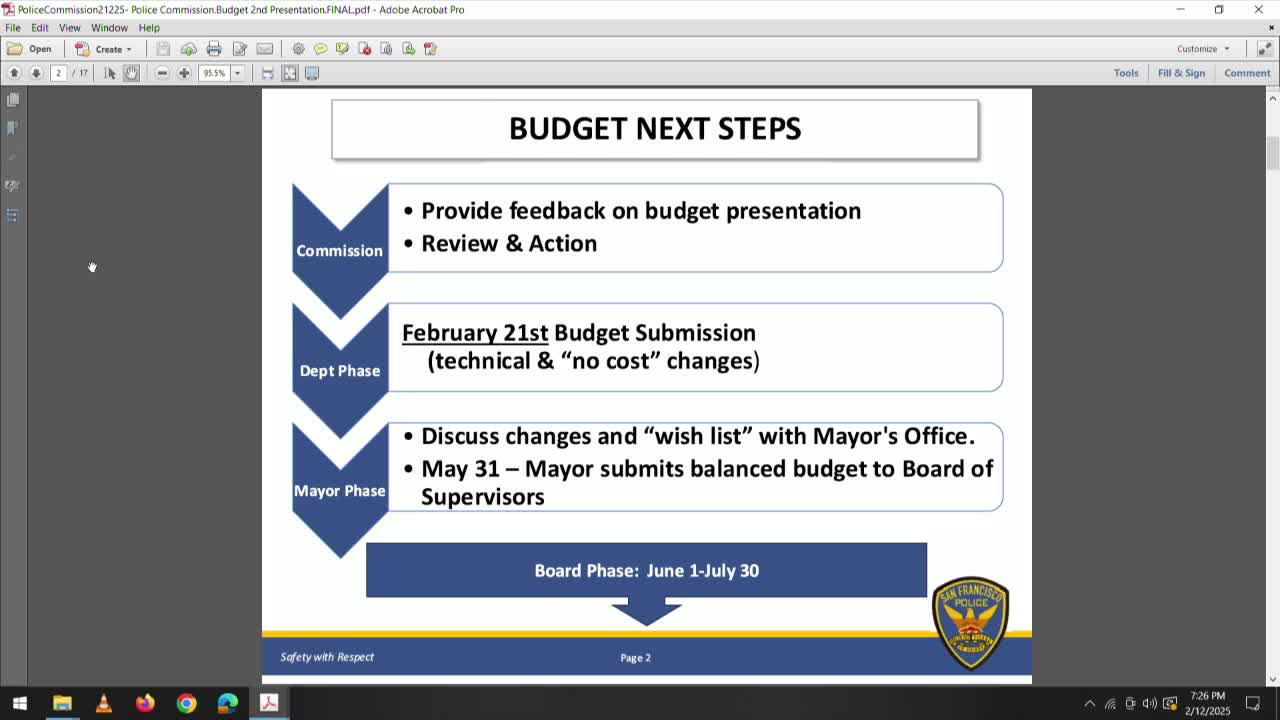 SFPD presents FY26–27 budget priorities; department emphasizes personnel costs, aging fleet and technology plan