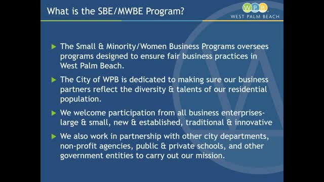 West Palm Beach details SBE and MWBE certification requirements, interlocal recognition with county and school district