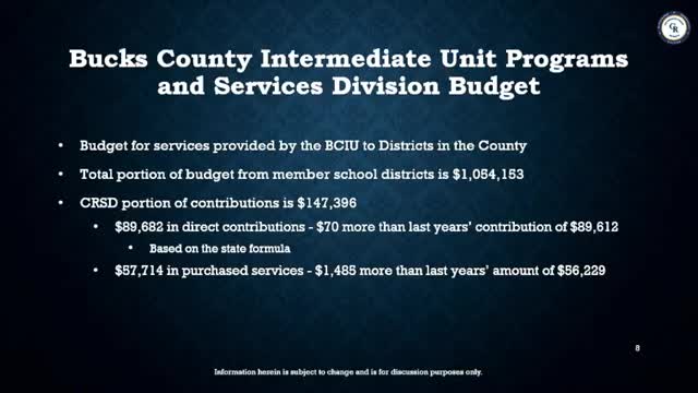 Board asked to approve Bucks County IU programs budget and a search agreement for technology director