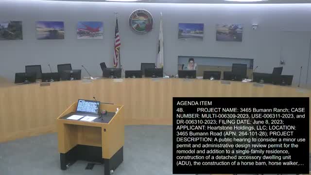 Staff recommends approval for Boomen Ranch equestrian project at 3465 Boomen Road; neighbors raise fire and drainage concerns