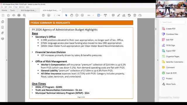 Agency of Administration presents FY2026 budget overview; few major new general‑fund items