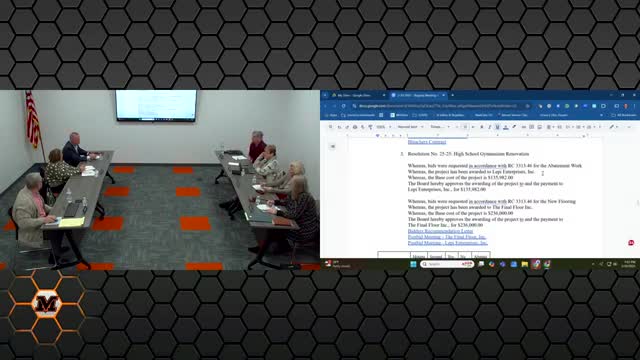 Board approves gym floor replacement and hazardous‑material mitigation after tartan floor testing