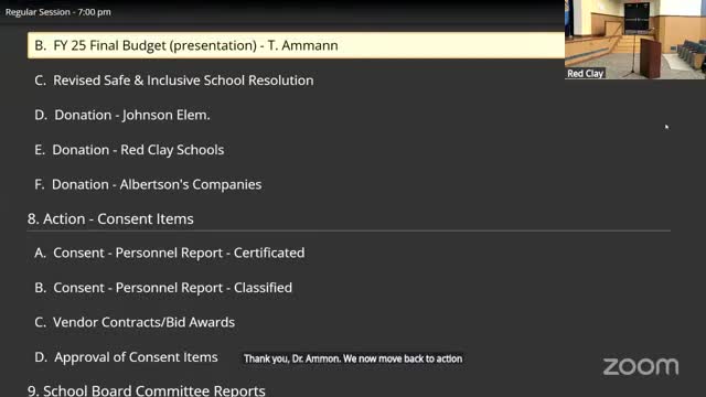 Red Clay board approves school choice invitations, final budget and safety resolution; accepts donations