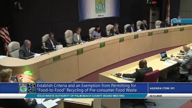 Solid Waste Authority adopts exemption to allow grocery pre‑consumer food diverted to animal feed