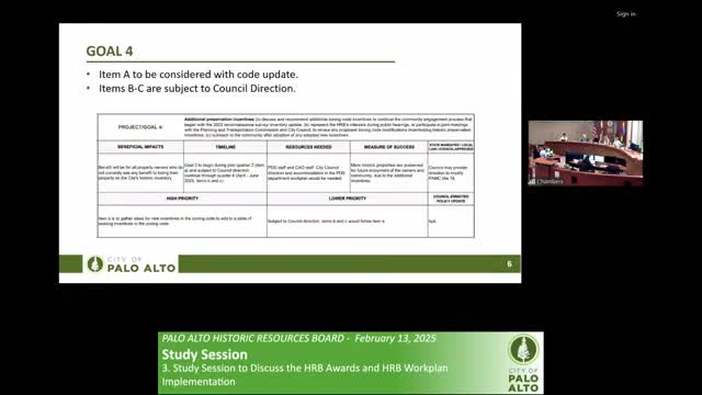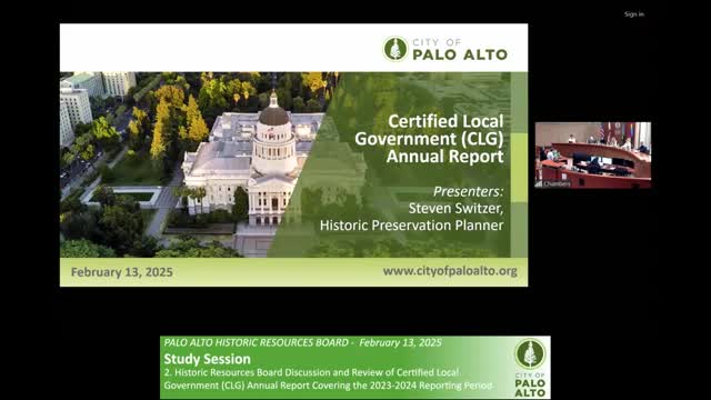 Palo Alto Historic Resources Board reviews Certified Local Government annual report, assigns owners for 2025 work-plan goals