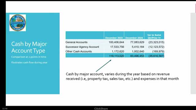 Treasurer reports lower year-end cash; council approves increased grant-writing contract and an active-transportation grant award