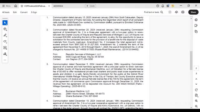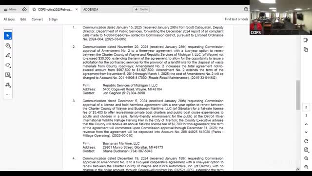 Wayne County commissioners approve vendor contracts, park millage grants in unanimous vote