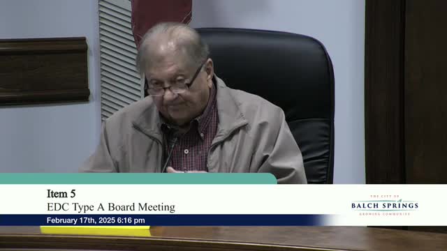 Balch Springs Type A EDC approves three sponsorships/contracts; minutes and cleanup contract also approved