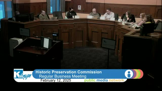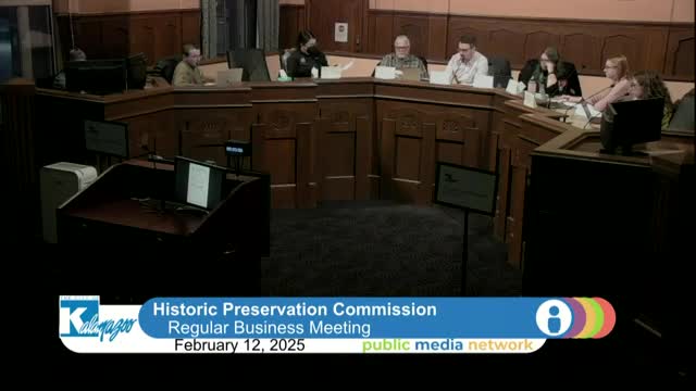 Kalamazoo preservation commission approves $150 venue, $250 food for O'Connor Fund pre-application meeting; discusses spending contingency