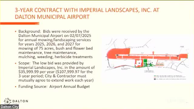 City awards three-year airport landscaping contract to Imperial Landscapes at about $36,000 per year