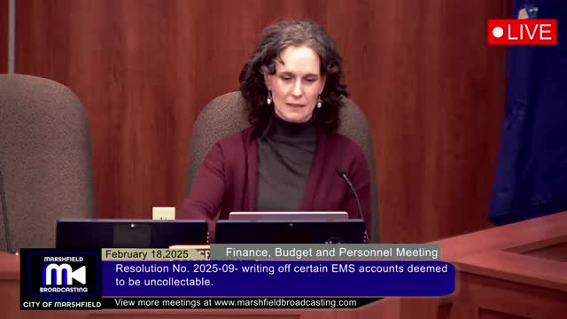 Committee recommends council approve write-off of uncollectible EMS accounts under Resolution 2025-09