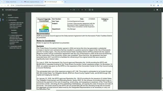 Kennewick council adopts $71.3 million 3 Rivers Convention Center expansion and approves city contribution to bond debt service