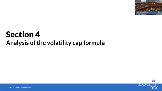 Pew: Connecticut’s volatility-cap formula pushed more revenue into BRF and pensions; rolling-average option would more closely track revenue