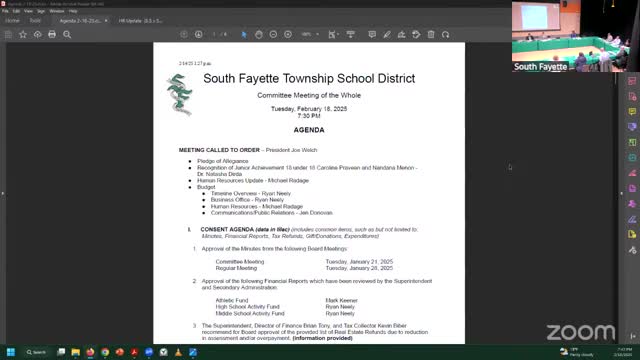 South Fayette board begins 2025–26 budget process; approves facilities truck and multiple personnel actions