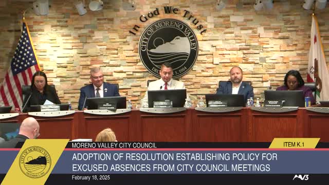 Moreno Valley council adopts policy on excused absences for council members, sets 1‑hour notice standard
