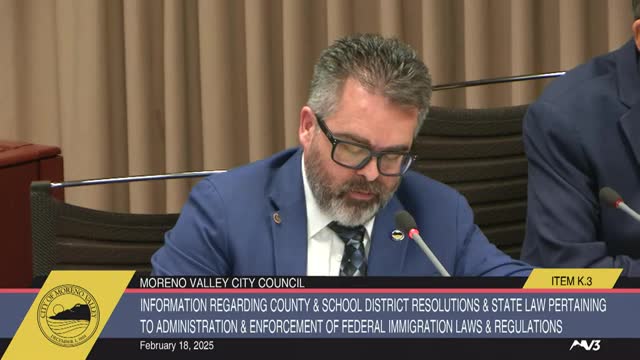 Moreno Valley council directs staff to draft resolution affirming support for law‑abiding immigrants, to return for vote