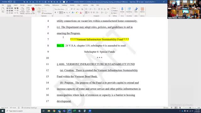 Committee examines draft Vermont Infrastructure Sustainability Fund to finance municipal infrastructure for housing