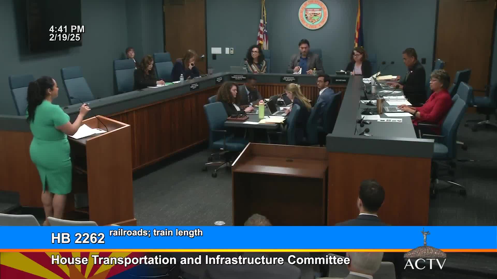 Committee debate over train-length limit yields tense testimony from railroads and unions; bill advanced