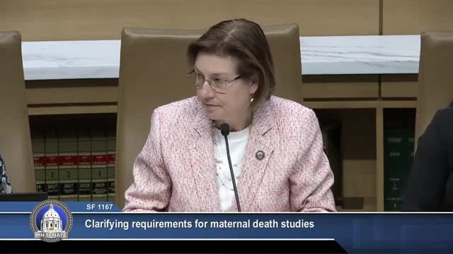 Senate bill would require annual maternal mortality studies; committee discussion rejects broad fetal‑death expansion