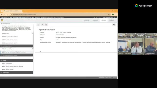 Votes at a glance: Northwestern Lehigh board approves personnel actions, contracts, policies and budgets