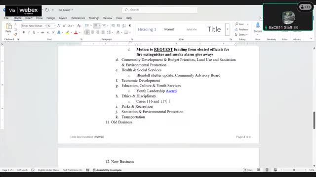Leadership committee requests fire‑safety giveaways funding, backs skate‑park support letter and extends ethics discussion time