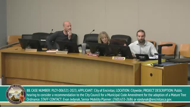 Planning commission recommends mature‑tree ordinance to city council with edits after extended debate
