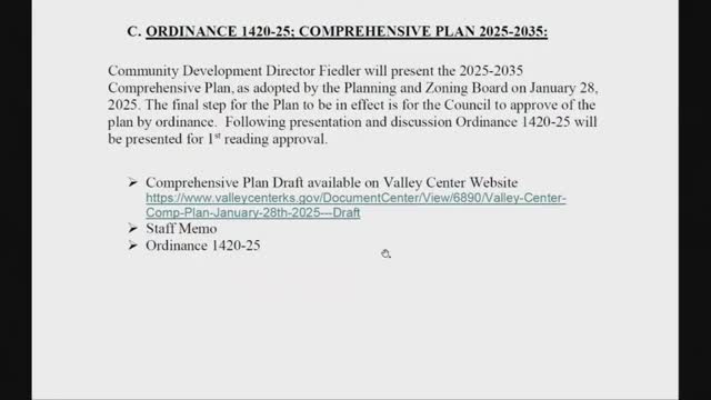 Valley Center council approves first reading of 2025–2035 comprehensive plan