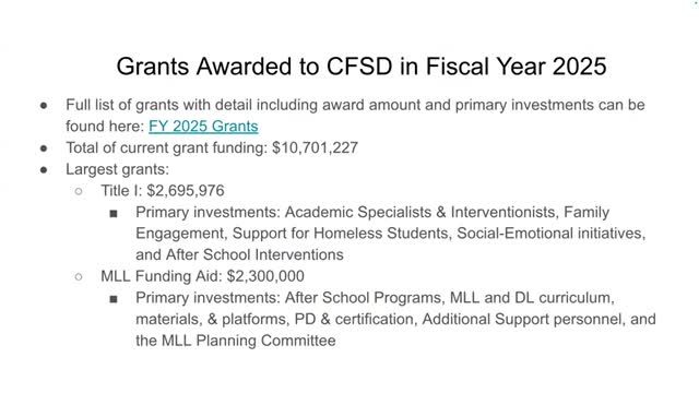 Central Falls schools report $10.7 million in active grants, highlight MLL and after‑school investments