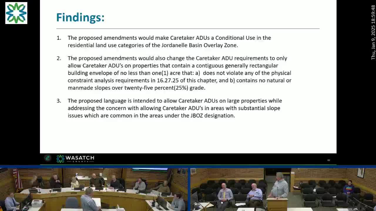 Commission backs recommendation to allow caretaker ADUs in Jordanelle Basin overlay with conditions; staff to refine building-envelope language