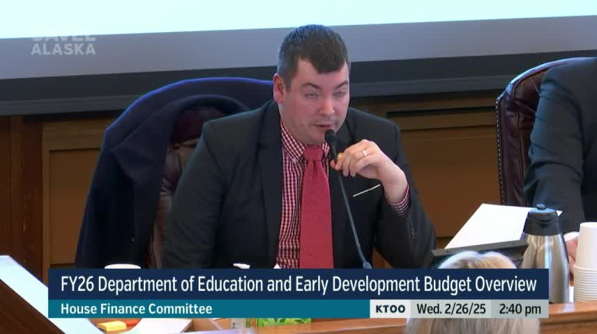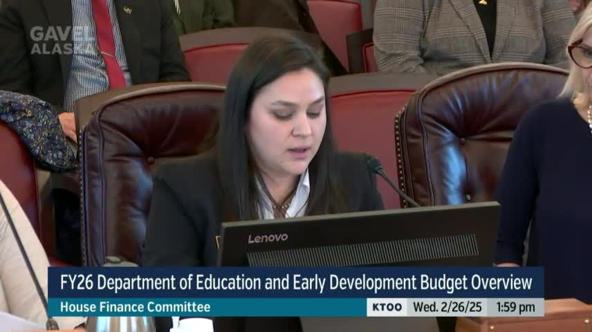 House Finance hears Alaska Department of Education FY26 budget overview; foundation program projected at $1.13 billion