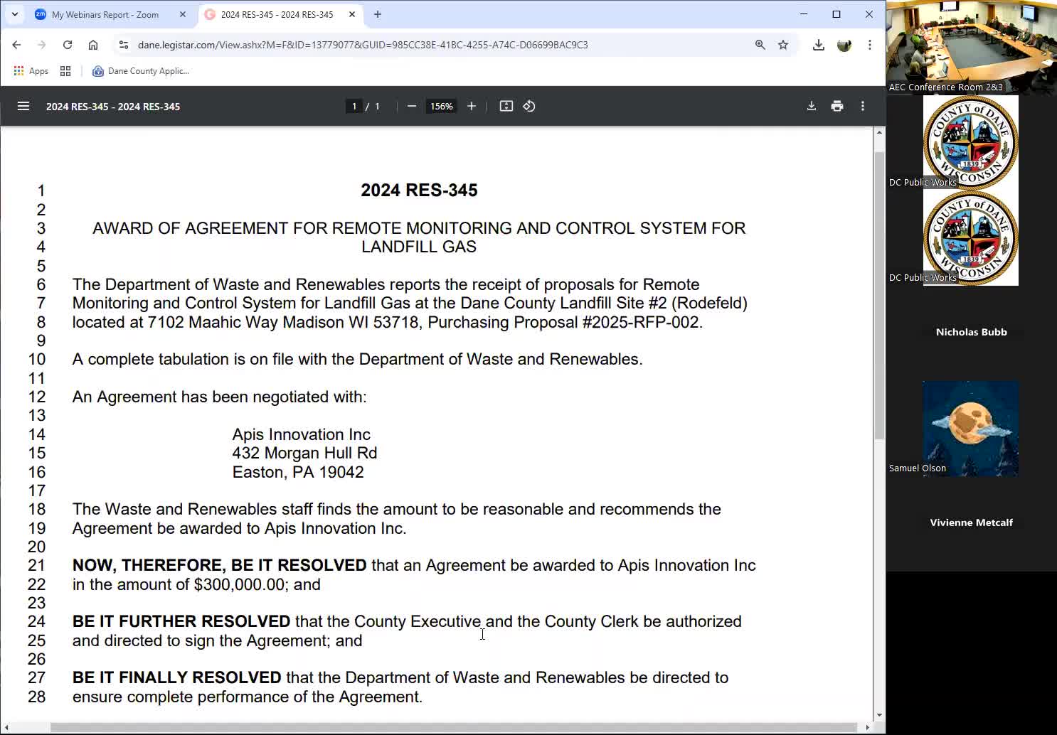 Committee approves remote monitoring and engineering services to modernize landfill gas and leachate systems