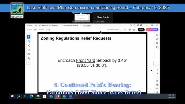 Lake Bluff zoning panel approves 3.5-foot front-yard setback variance for rear addition with tree-protection conditions