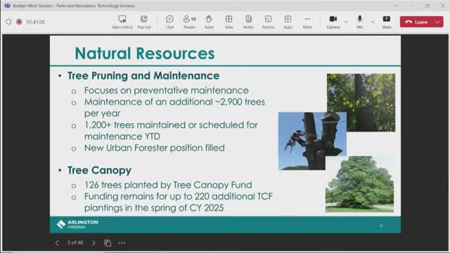 Board hears requests to stabilize funding for trees, invasive‑species control and deer management; conservation trust cut draws concern