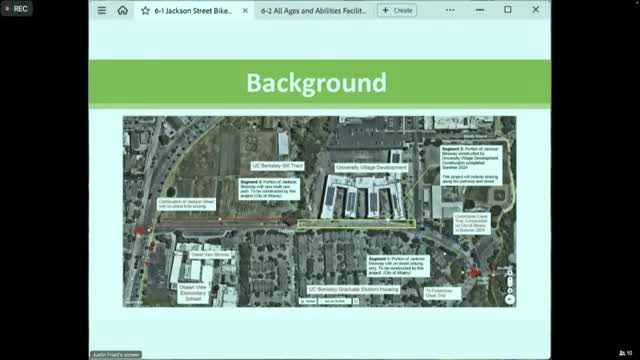 Albany staff, UC and consultants present conceptual design for Jackson Street bikeway; commissioners raise school connectivity, visibility and utility concerns