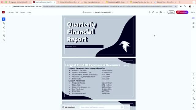 Business staff reports steady budget position; board asks about referendum-era operating costs