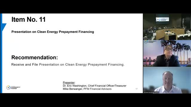 Presentation: prepayment financing can lower Community Power energy costs, advisor tells board