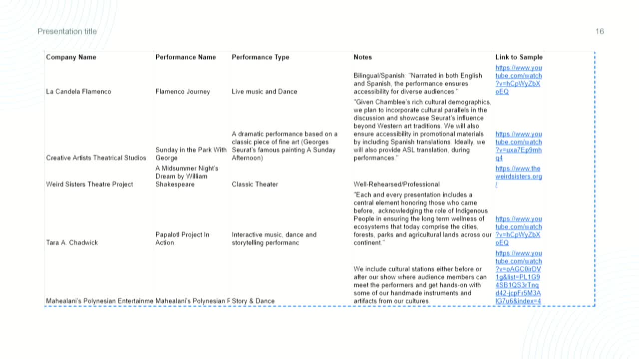 Public Art Commission hears wide-ranging proposals for 'Performance in the Park,' tables selection for special meeting