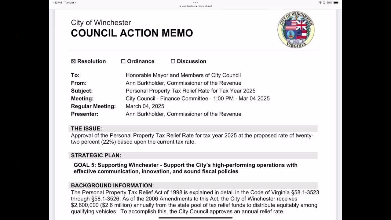 Commissioner outlines drop in personal property tax relief; committee forwards recommended rate