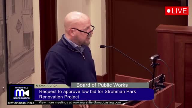 Board accepts low bid of $11,345 for Stroman Park renovation; owner of low bidder to donate labor and materials