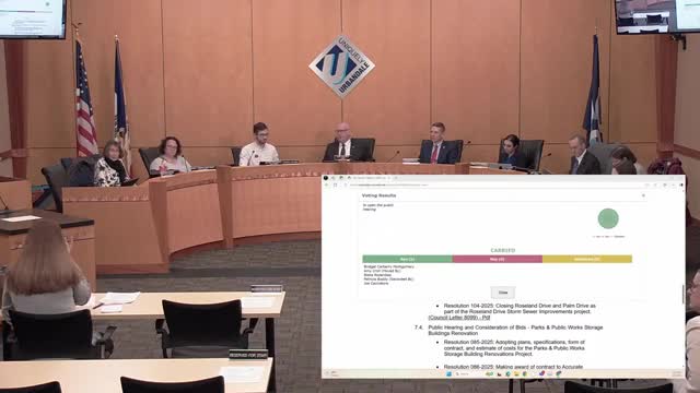 Council accepts low bid to renovate Parks and Public Works storage buildings; project includes new roofs and reduced overhead doors
