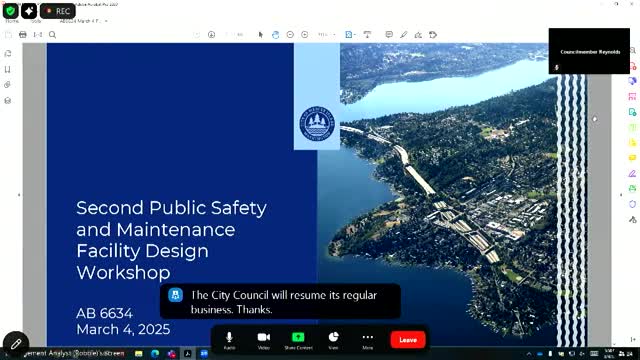 Council reviews schematic design for public safety and maintenance facility; staff to return with siting analysis and procurement recommendation
