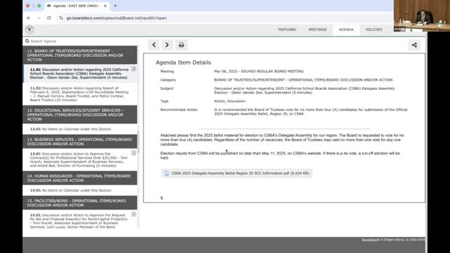 Board unanimously supports Van Le and George Sanchez for CSBA delegate slots
