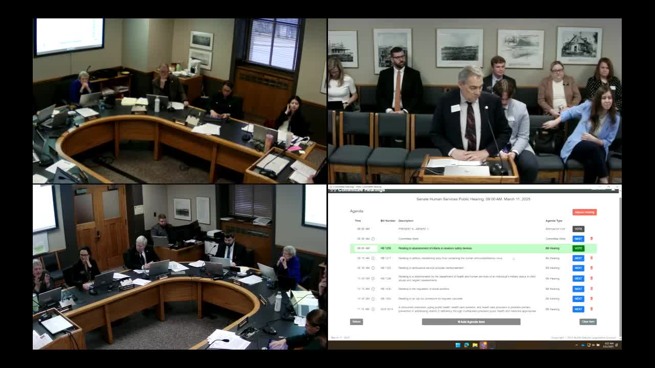 Senate Human Services committee hears testimony on safe-haven baby box pilot (HB1205)